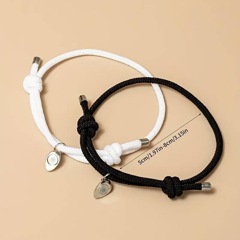 Magnetinės apyrankės porai su širdelės simboliu, juoda/balta.