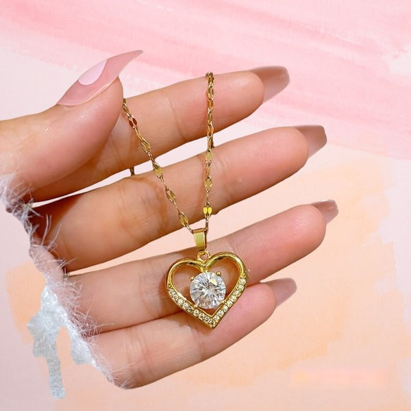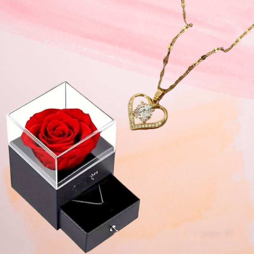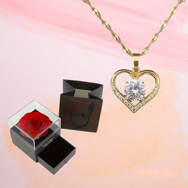Širdelės formos kaklo pakabukas prabangioje dėžutėje su rože.
