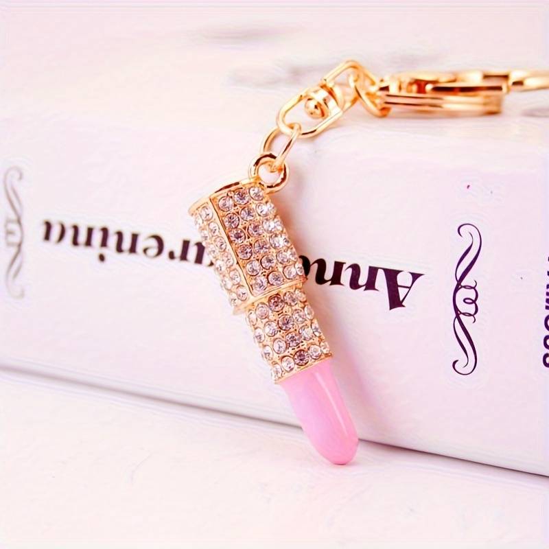 Rožinis lūpdažis raktų pakabukas